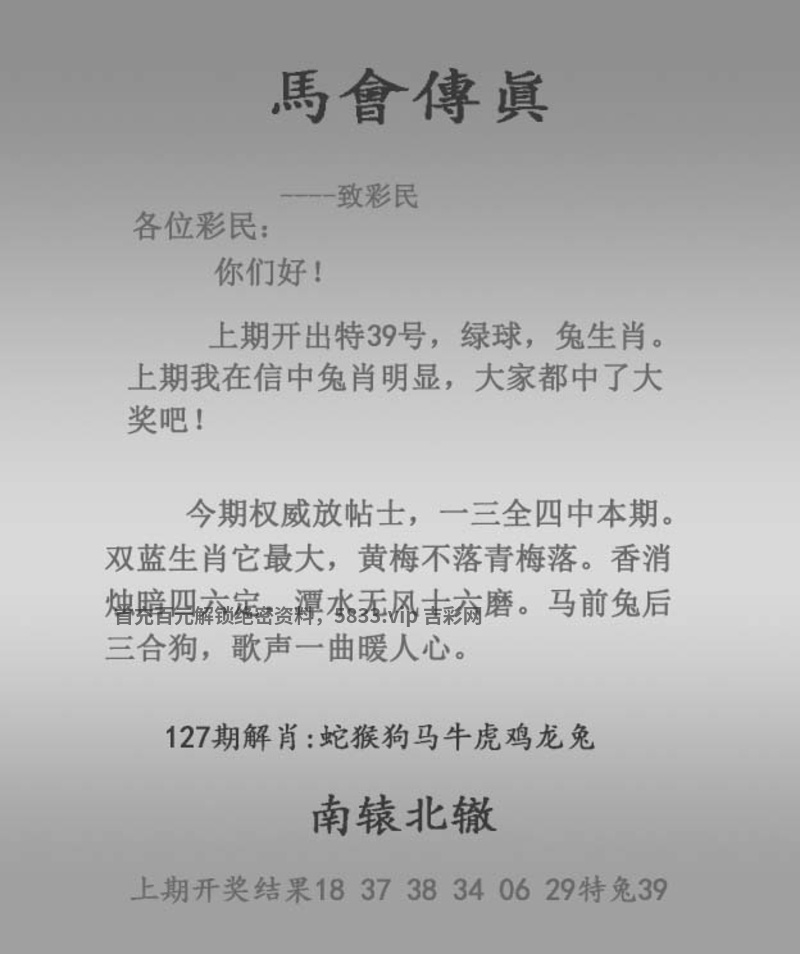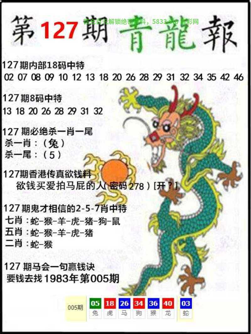 | 127期:白小姐网★六肖中特 | 127期:六合神话★天地中特 |